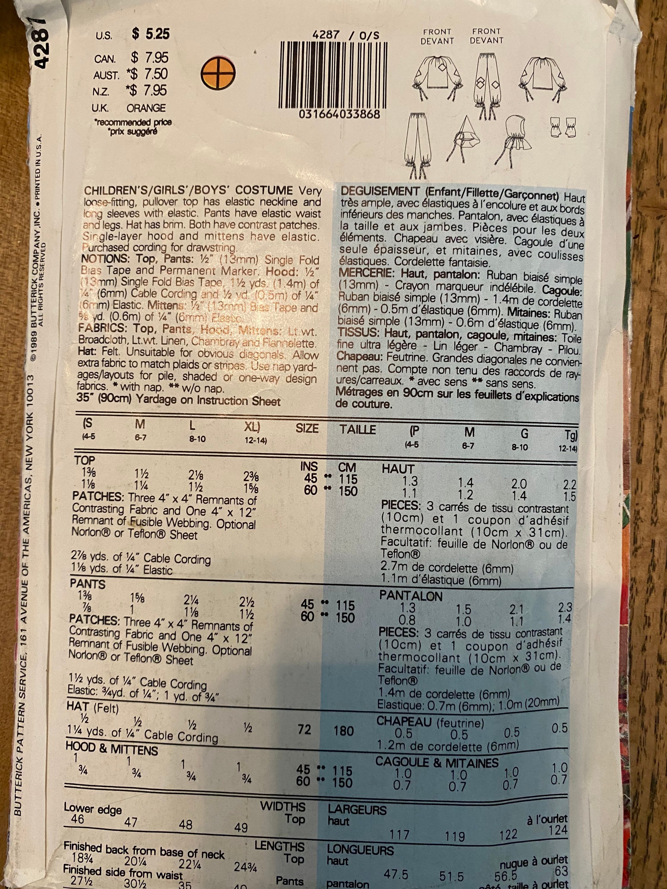 Sewing Pattern Halloween Costume Scarecrow Butterick 4287 Etsy